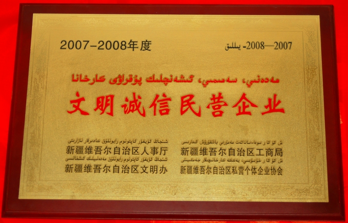 2010年6月,被新疆銀行業協會評為2008-2009年新疆銀行業“信貸誠信企業客戶”榮譽稱號。(文件及證書)